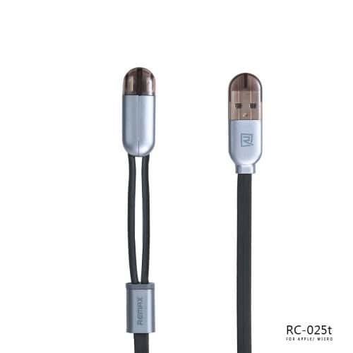 Remax Καλώδιο Φόρτισης και Μεταφοράς Δεδομένων 2 σε 1 USB to MicroUSB + Lightning – 1m (RM5-018-BLK) – Black