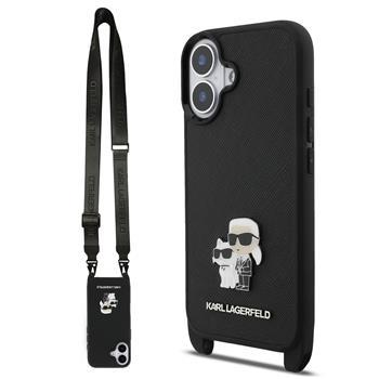 Θήκη κινητού Karl Lagerfeld Saffiano Crossbody Strap Metal Karl and Choupette for iPhone 17 Black
