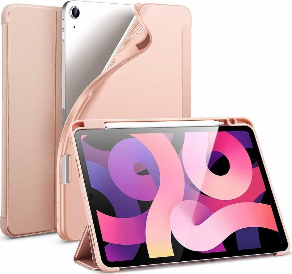 Θήκη ESR κατασκευασμένη από τεχνητό δέρμα και σιλικόνη στο πίσω μέροςΜε δυνατότητα stand, έτσι ώστε να διευκολύνονται η παρακολούθηση βίντεο ή διαφανειών.Προστατεύει τη συσκευή σας από σκόνη, γρατσουνιές και χτυπήματα ενώΕπιτρέπει την πρόσβαση στις θύρες χωρίς την αφαίρεσή της.Γρήγορη και εύκολη πρόσβαση στο Apple pencil.Οι χρήστες που το έχουν αγοράσει το ξεχωρίζουν κυρίως γιατί εφαρμόζει καλά στο tablet και είναι ανθεκτική.